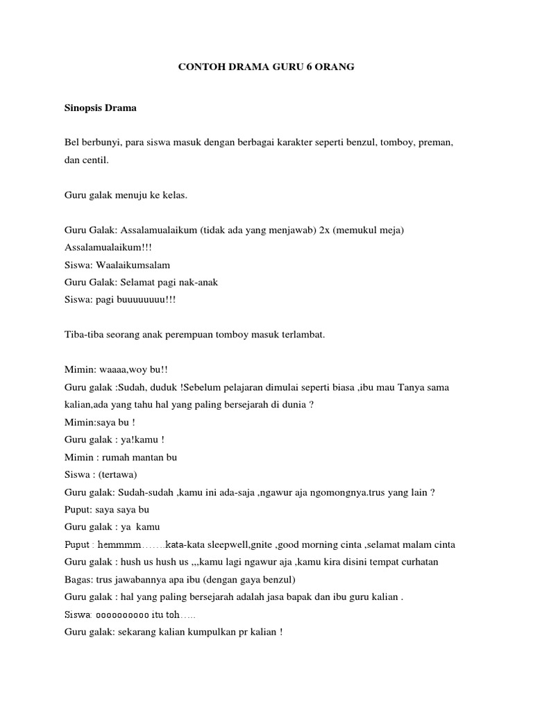 Sumber : gurupendidikan.co.id Contoh Drama Guru 6 Orang