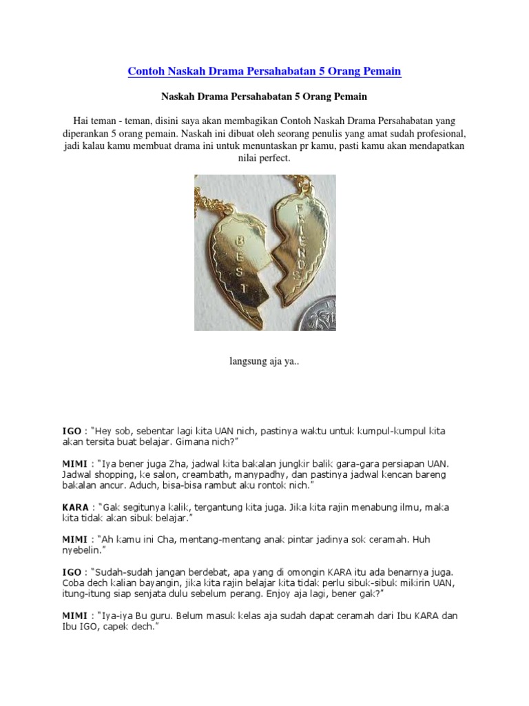 Naskah Drama Sedih Untuk 5 Orang. 235188407 Contoh Naskah Drama Persahabatan 5 Orang Pemaindocx