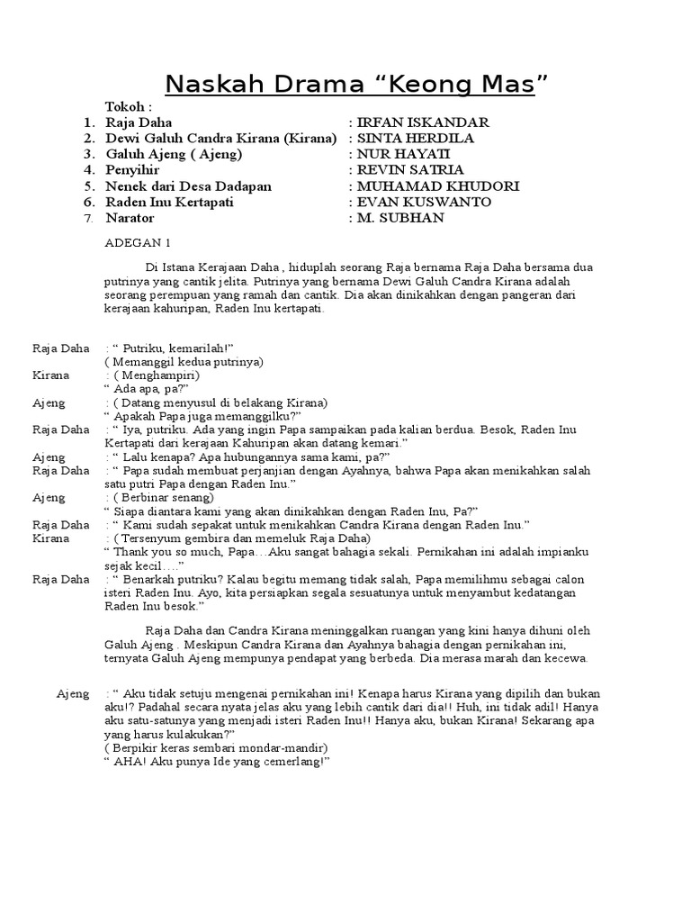 Sumber : id.scribd.com Naskah Drama Cerita Rakyat Keong Mas Untuk 6 Orang Soal Soal 2