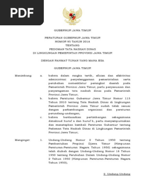 Tata Naskah Dinas Provinsi Jawa Timur. Pergub No 95 Tahun 2018 Tentang Tata Naskah Dinas