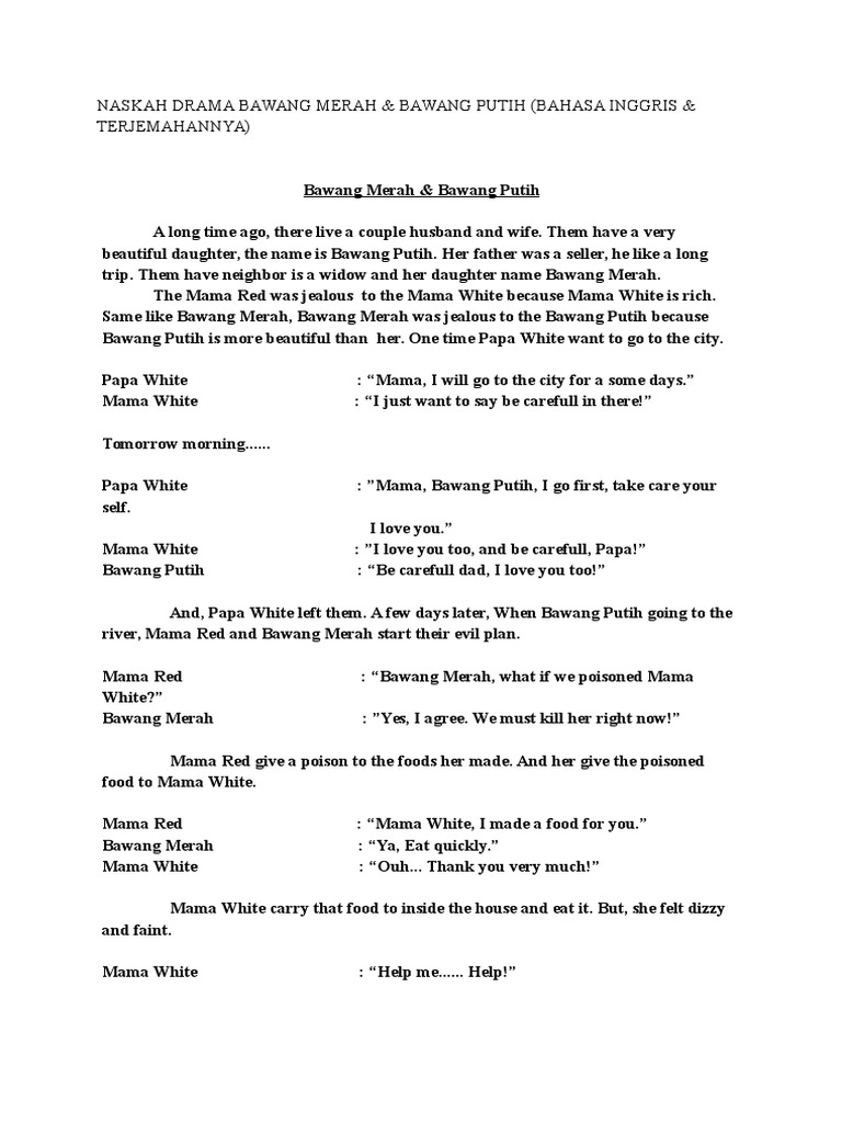 Contoh Naskah Drama Bahasa Bali 5 Orang. Naskah Drama Bawang Merah Bawang Putih Dalam Bahasa Inggris