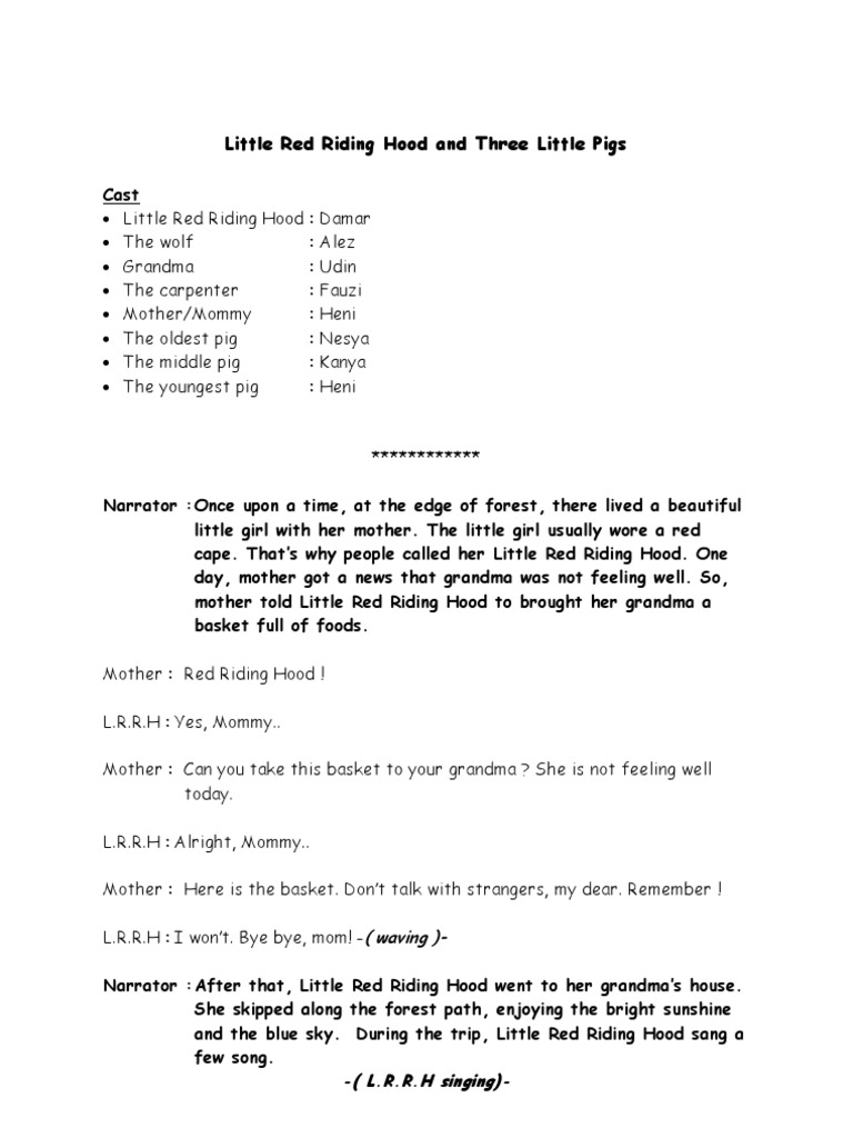 Naskah Drama Singkat Bawang Merah Bawang Putih 5 Orang. Little Red Riding Hood And Three Little Pigs Mixed Drama