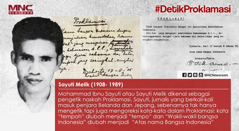 Sumber : travel.detik.com Sayuti Melik Pengetik Naskah Resmi Proklamasi Yacob
