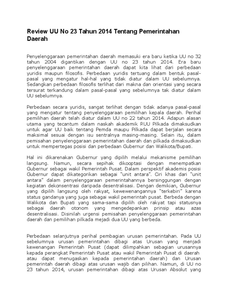 Naskah Akademik Uu 23 Tahun 2014. Review Uu No 23 Tahun 2014 Tentang Pemerintahan Daerah
