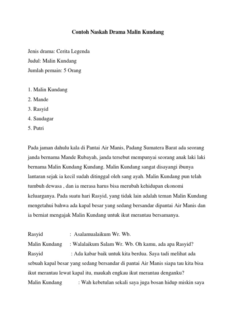 Inilah pembahasan selengkapnya mengenai naskah drama malin kundang untuk 7 orang. Admin dari blog Berbagai Naskah 2020 juga mengumpulkan gambar-gambar lainnya terkait naskah drama malin kundang untuk 7 orang dibawah ini.