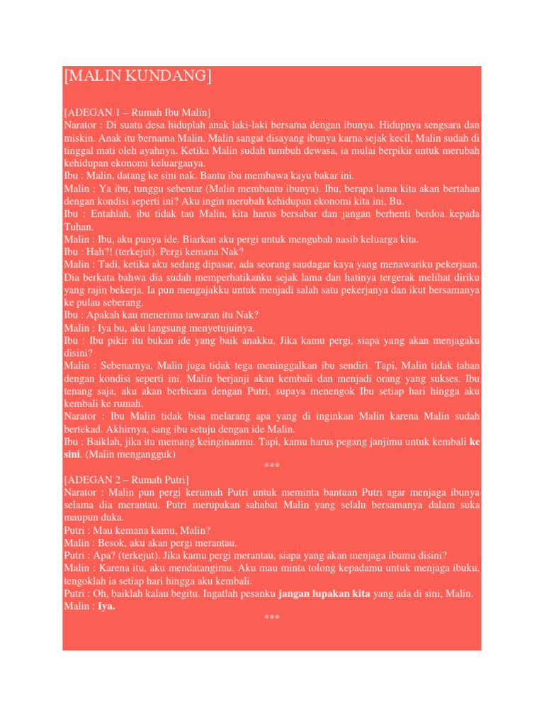 Sumber : pulllaburggua39.soup.io Doc Tugas Bahasa Inggris Naskah Drama Malin Kundang
